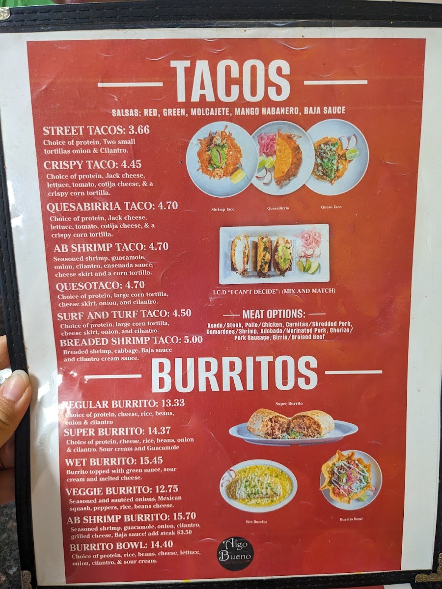 Introducing Algo Bueno, a culinary gem in Sacramento that elevates the Mexican dining experience. Located at 2990 Northgate Blvd, this vibrant eatery offers a menu bursting with creativity and flavor. You won't want to miss their signature Bowl - choose from a savory burrito bowl or the delightful AB Bowl, featuring seasoned shrimp paired with creamy avocado and zesty cilantro lime sauce.